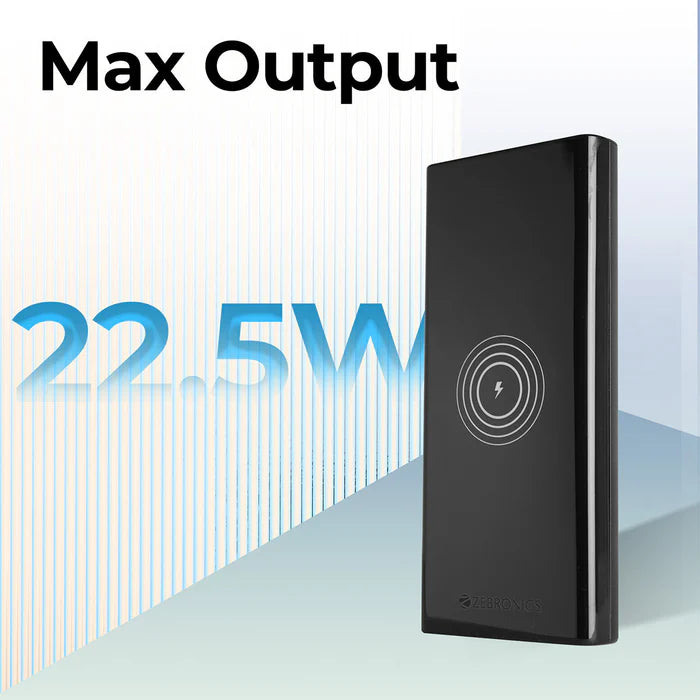 ZEBRONICS POWER BANK - 10000MAH (BLACK) | 22.5W | Wireless