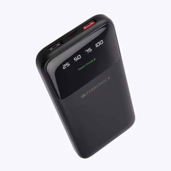 ZEBRONICS POWER BANK - 10000MAH | 22.5W WITH 2 in 1 BUILT-IN CABLE