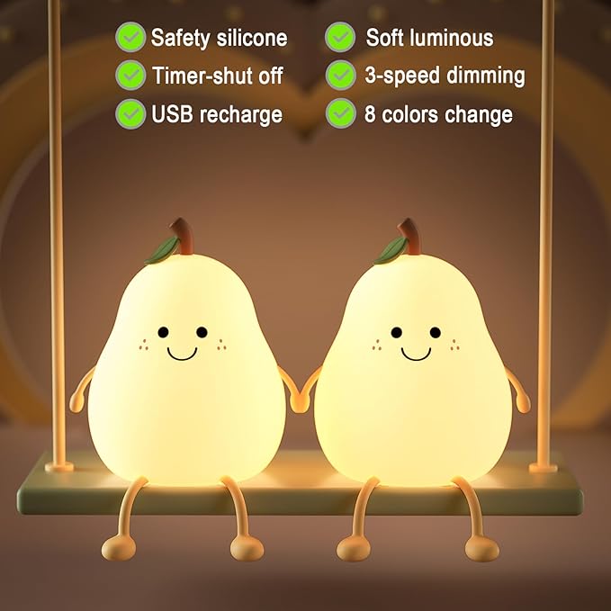 . Adorable Design: Made of soft silicone, this adorable pear-shaped night light is ideal for a child's bedroom or nursery.