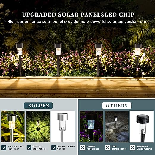 •ELEGANT DESIGN Any pathway can benefit from solar outdoor lights. To make your driveway, walkway, deck, garden path, or any other outdoor area glow at night, decorate it.