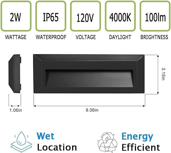 color sync- ZONK Waterproof Rectangular Wall Mount Footlight for Step Stairs and Decking; Landscape Deck Lighting 120V; Black