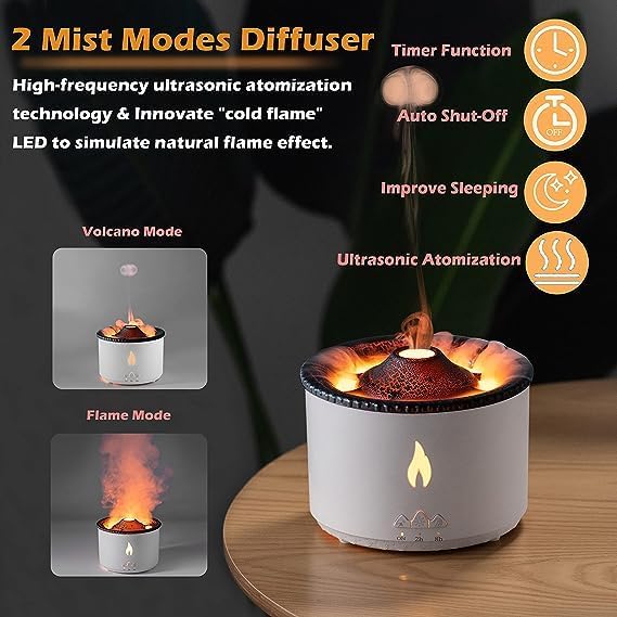 Humodi -Flame Air Diffuser Volcano Aroma Diffuser Ultrasonic Oil Diffuser 360mL Auto-Off Protection for Home,Office or Yoga, Gym.
