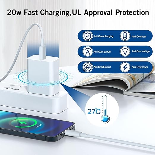 • Super-Fast Charger: Up to three times faster than the original 5W charger, this 20W USB-C iPhone charger with a 3FT USB-C to light-ning connection charges your device. Unmatched speed extends your life and reduces charging time.