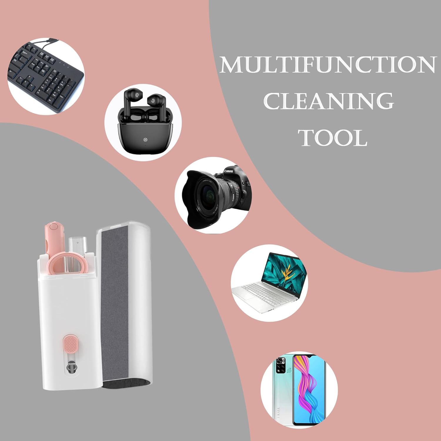 . Multipurpose Cleaning Kit: With our all-in-one 7-in-1 kit, you may enhance your electronics cleaning routine. A screen cleaner spray with cleaning liquid, an earphone cleaning pen, a keycap buckle, and a cleaning brush are included. This versatile package provides a complete and efficient cleaning solution for a range of electronics cleaning needs.