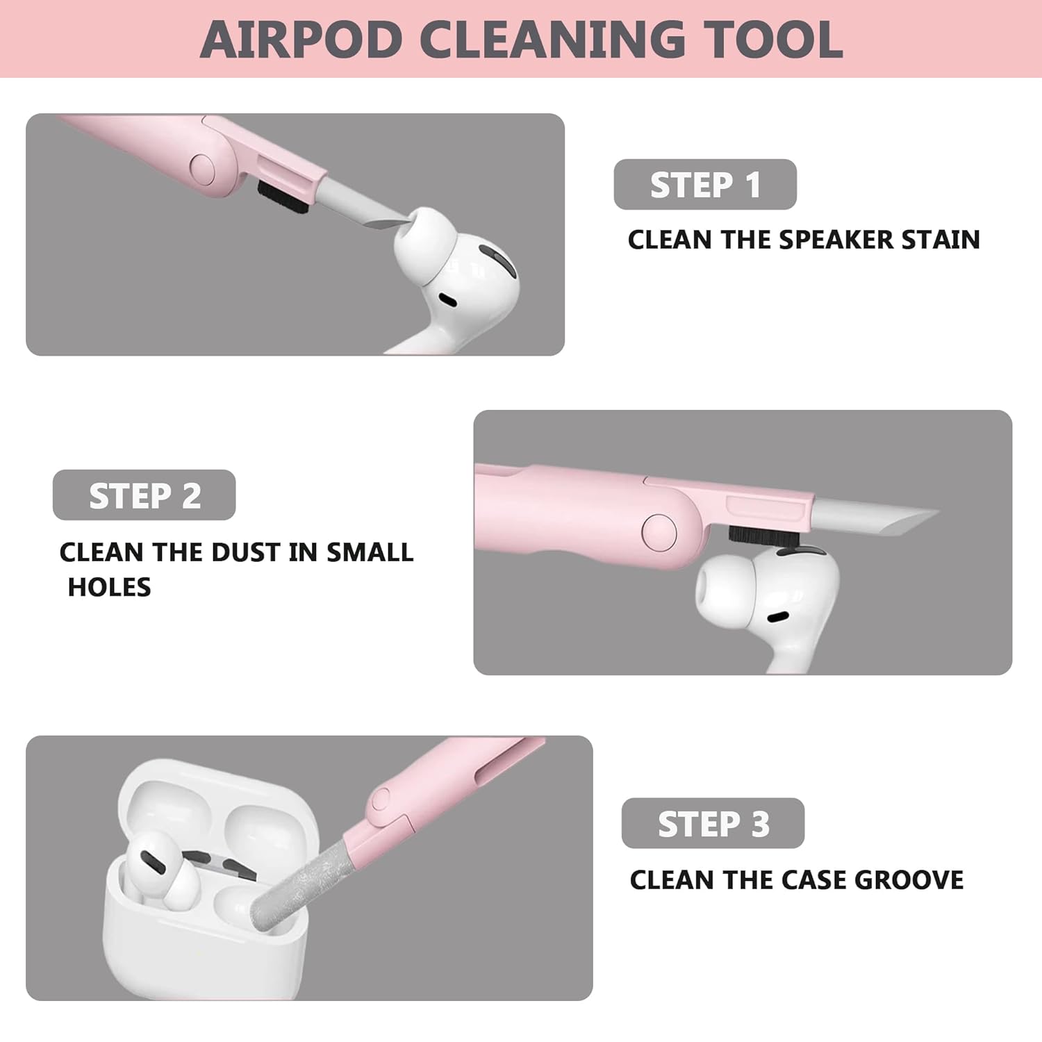 . Three-in-One Foldable Cleaning Pen: We have a silicone head on our laptop, phone, and earbud cleaner to safely clean in nooks and crannies. The little brush is designed to target dust that is buried in deep cracks and crevices, and the flocking sponge is perfect for earphone charging cases. Perfect for fine cleaning, particularly with mesh surfaces.