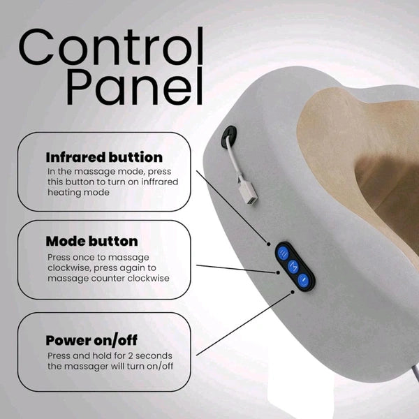 Rechargeble U-Shaped Travel Neck Massage Pillow for Neck, Shoulder & Back Pain Relief Soft Memory Foam with Adjustable Fit