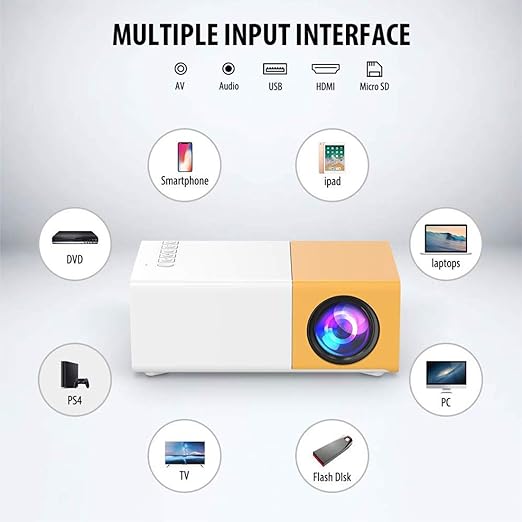 Numerous Interfaces: This compact projector has several interfaces, including AV, Micro SD, USB, HDMI, and audio connectors. It is simple to connect to a variety of media devices, including TV boxes, laptops, desktop computers, digital cameras, and devices that support HDMI for playing games, exchanging images, and watching TV shows.