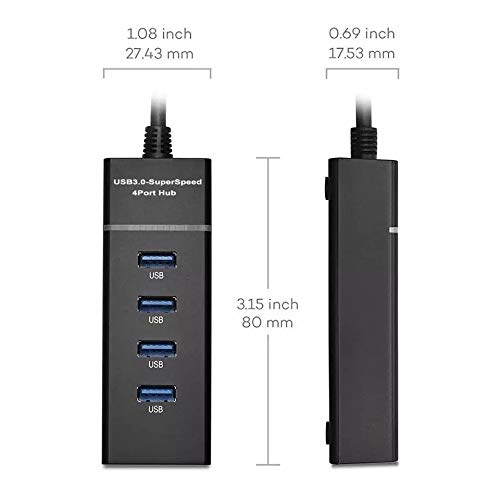 • SMALL DESIGN FOR TRAVEL: The strip design offers spacious access to all four ports at once; A 12 inch flexible cable tail built into the hub that can be folded into the pocket of your laptop bag.