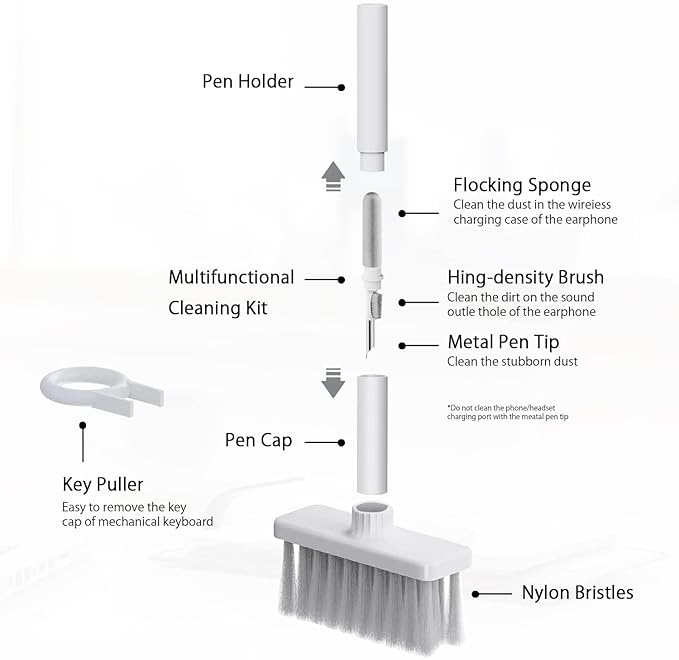 • Hagibis 5-in-1 Computer Cleaning Kit Features a Separated Dual Head Design with Metal Pen Tip, Nylon Bristles, Flocking Sponge, High-density Brush, and Keycap Puller to Meet a Variety of Cleaning Needs.
