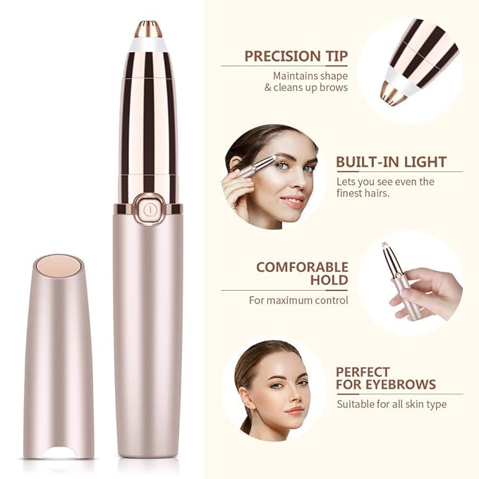 Tech nova-Painless Eyebrow Hair Remover,upper lip hair remover for women hair removal trimmer for women with LED Light for Women - Rose Gold
