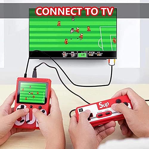 • SUP GAME 400 in 1 Handheld Video Game Console Retro Game Box with TV Output 8 GB of Mario, Super Mario, DR Mario, Contra, Turtles, and another 400 games, along with 2 GB of USB RECHARGER (Red) with Mario, Contra, and Turtles
