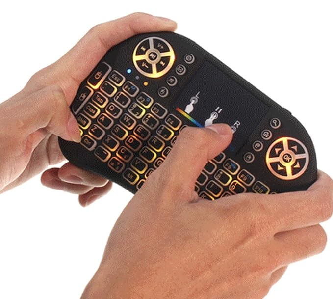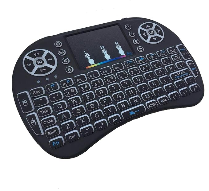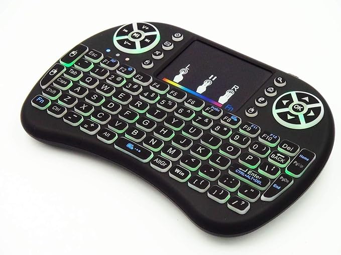 Tech novo - mini wireless 2.4 GHz 7-color backlit- touchpad keyboard with mouse, rechargeable for usage on PCs, Macs, and Android devices (Black)