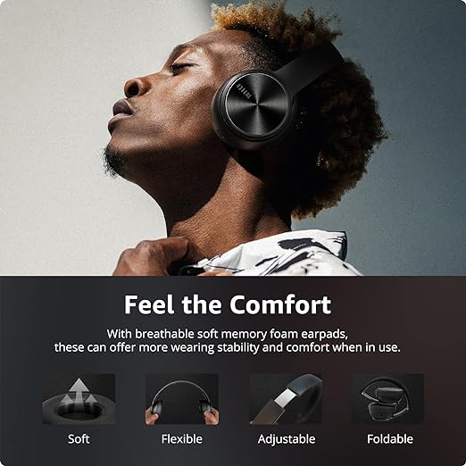• Wearable Bluetooth headphones that are lightweight and ultra-soft. You can wear the headphones for extended periods of time without experiencing fatigue or discomfort because the case is composed of ABS safety material and comes with memory protein ear pads. Through the belt, the headset can be flexibly adjusted to fit the head. To achieve a reduced volume for more comfortable travel, the headset is effortlessly foldable.