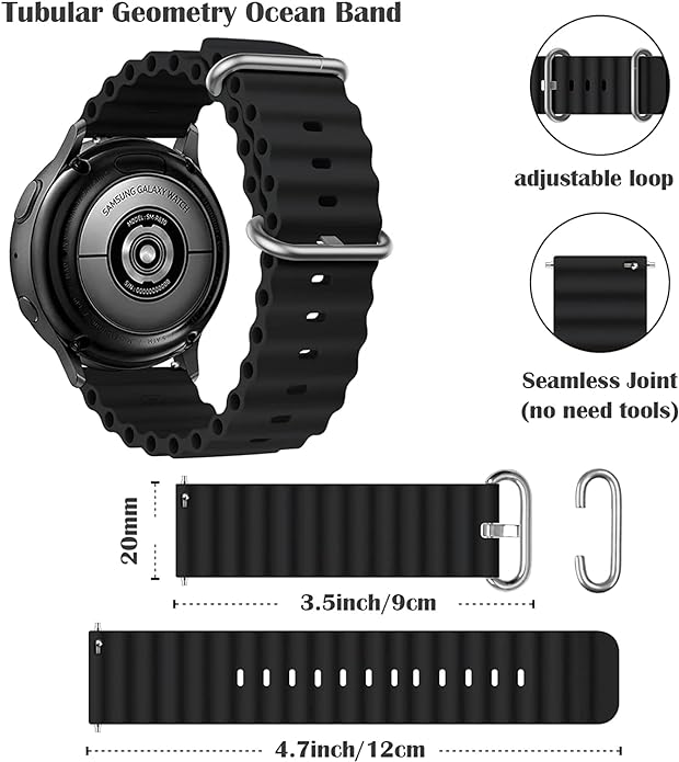 • Compatibility: Compatible with Ocean Band Compatible with Samsung Galaxy Watch 5 Band 40mm 44 mm, Samsung Galaxy Watch 5 Pro 45mm, Samsung Galaxy Watch 5 BT 44mm. Samsung Galaxy Watch 4 (40mm/44mm) & Galaxy Watch 4 Classic (42mm/46mm) & Samsung Watch Active 2 (40mm /44mm) & Watch Active 40mm & Galaxy Watch 3 41mm & Galaxy Watch 42mm & Gear Sport & Gear S2 Classic and all smartwatch with 20mm width watch lugs.(Note: Watch is not Included).
