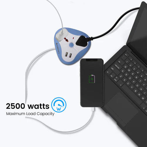 ZEBRONICS - USB POWER STRIP|2500W|0.88M|2 Socket|2 USB